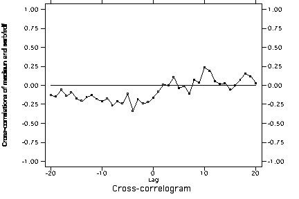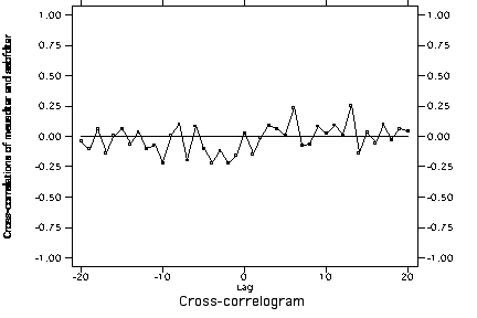 Cross-correlation of US mediation and Serbia->Bosnia cooperation with trend and autocorrelation removed from both series